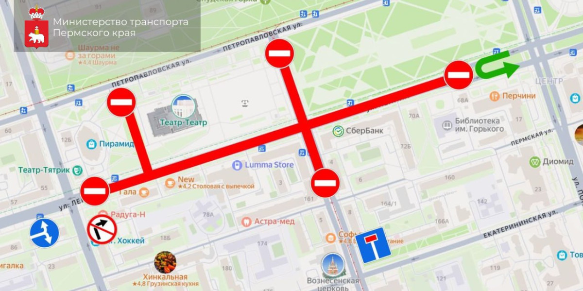 С 20:00 30 августа до 1:00 31 августа движение транспорта перекроют на ул. Борчанинова (от Петропавловской до Пермской), ул. Ленина (от Крисанова до Попова) и возле «Театра-Театра».