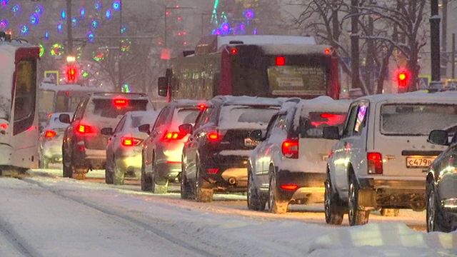 Фотоподборка: из-за снегопада Пермь встала в 10-балльных пробках