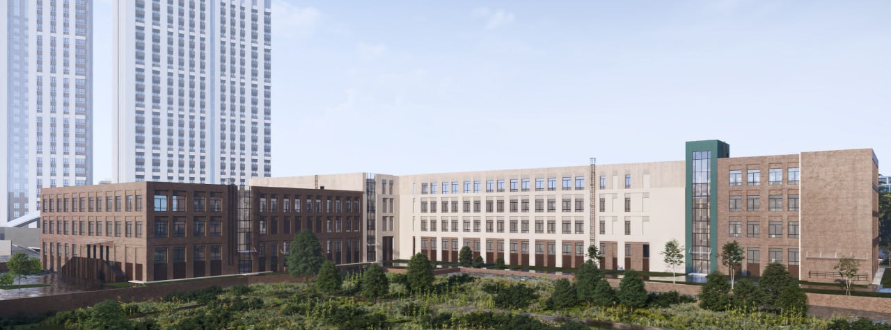 Четырехэтажное здание будет рассчитано на 1050 учеников. В нем предусмотрят специализированные кабинеты информатики, химии и физики с лаборантскими, классы иностранного языка, столярную и слесарную мастерские, кухню и кабинет домоводства. Также в школе разместят библиотеку с читальным залом, столовую на 550 мест, актовый и два спортивных зала.